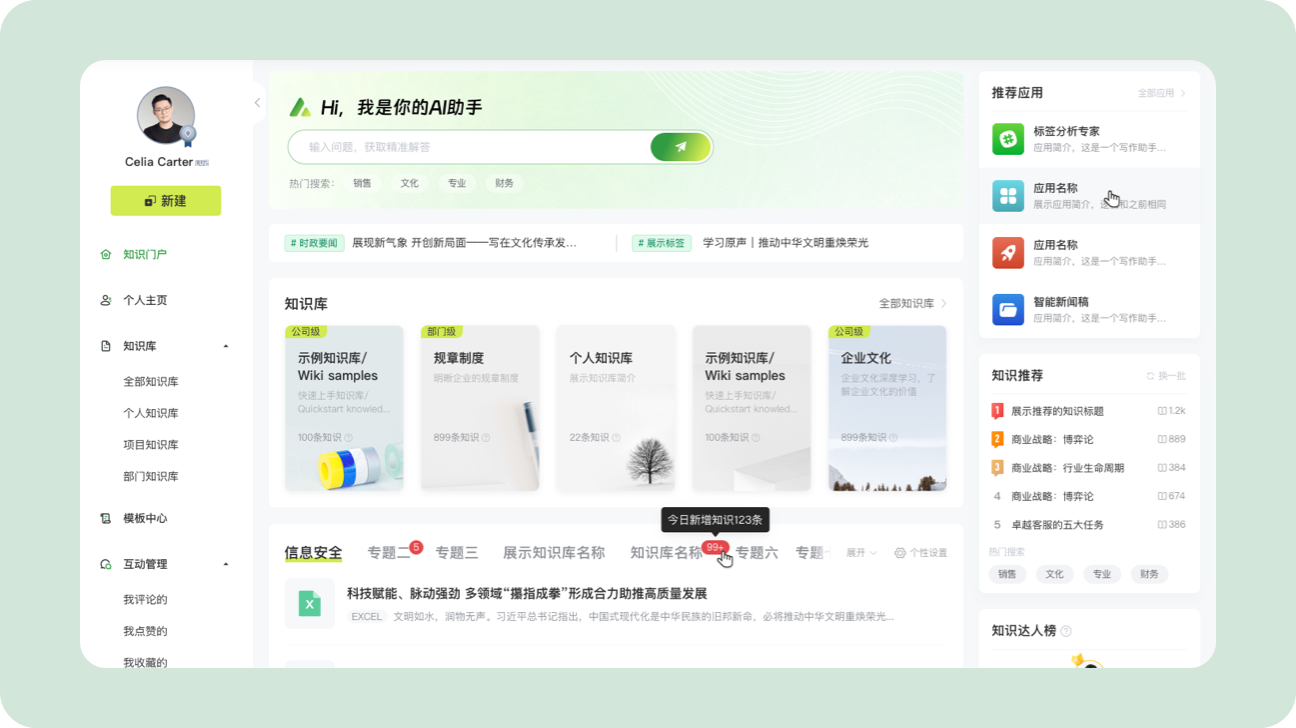 - 个性化学习规划与陪伴:AI学习助手可根据员工的岗位、职级及学习进度,定制专属学习路径并推荐适配内容。同时,它能扮演“学习伙伴”角色,定期提醒学习进度、给予学习激励,并每周生成学习大纲帮助员工巩固知识。